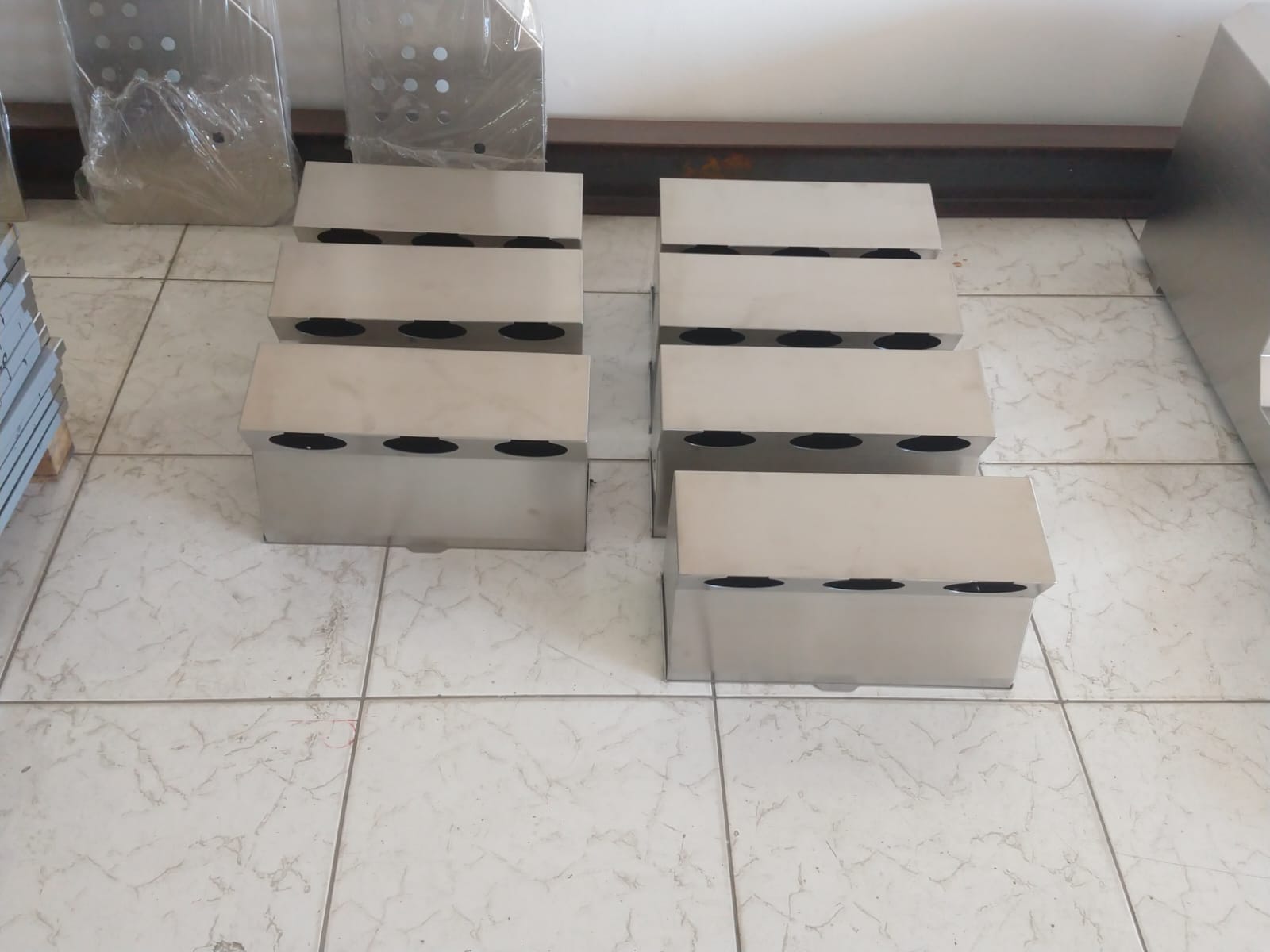 - Funil saída única, funil saída duplas, moegas, silos em aço inox e aço carbono, tanques.